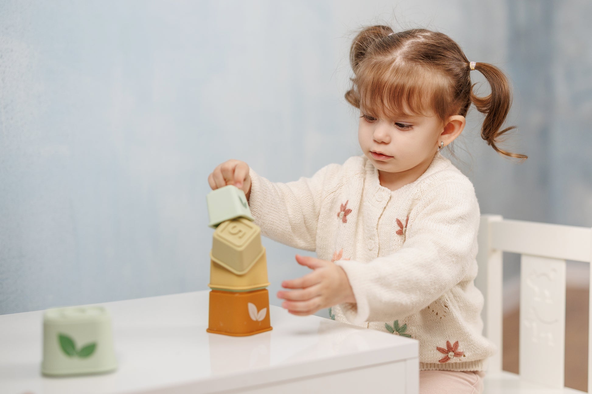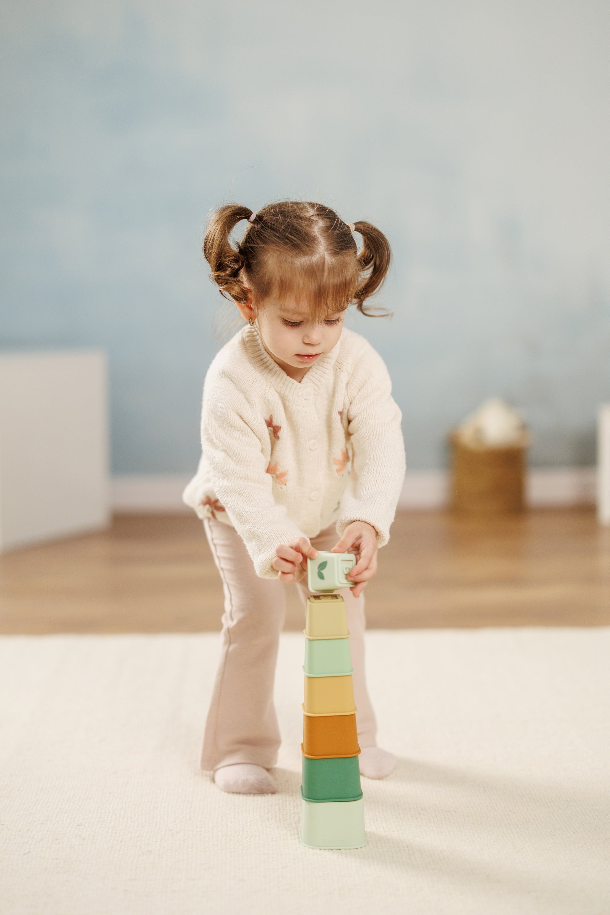 The Silicone Tower with Green Leaves from Moovertoys is a fun and educational toy for young children. This tower encourages stacking and motor skills while adding a modern element to the toy collection. Made from high quality silicone, which is safe for children.